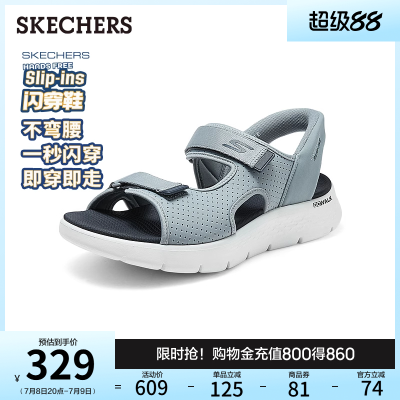 Skechers斯凱奇男鞋休閑涼鞋2025夏季新款輕質緩震露趾沙灘鞋拖鞋