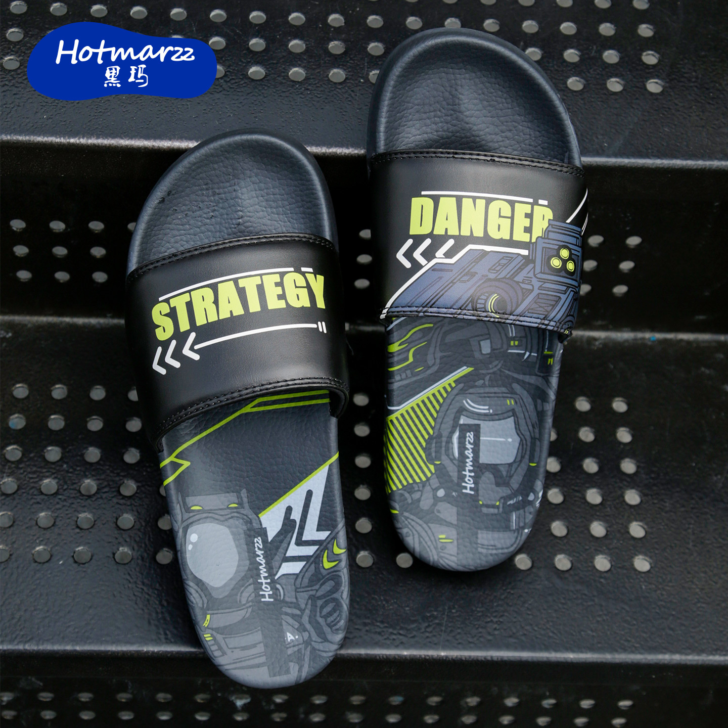 hotmarzz/黑瑪新品夏季外穿防滑舒適耐磨海邊沙灘厚底一字拖鞋男