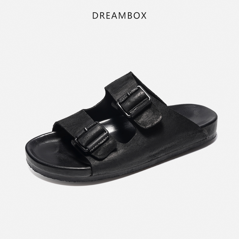 dreambox鈞博水洗馬皮男士拖鞋2025夏季新款沙灘鞋厚底外穿拖涼鞋