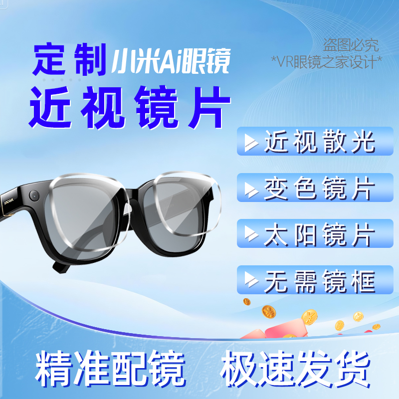 適用小米ai眼鏡鏡片變色墨鏡近視鏡片配鏡片定制 散光 遠視 鏡片