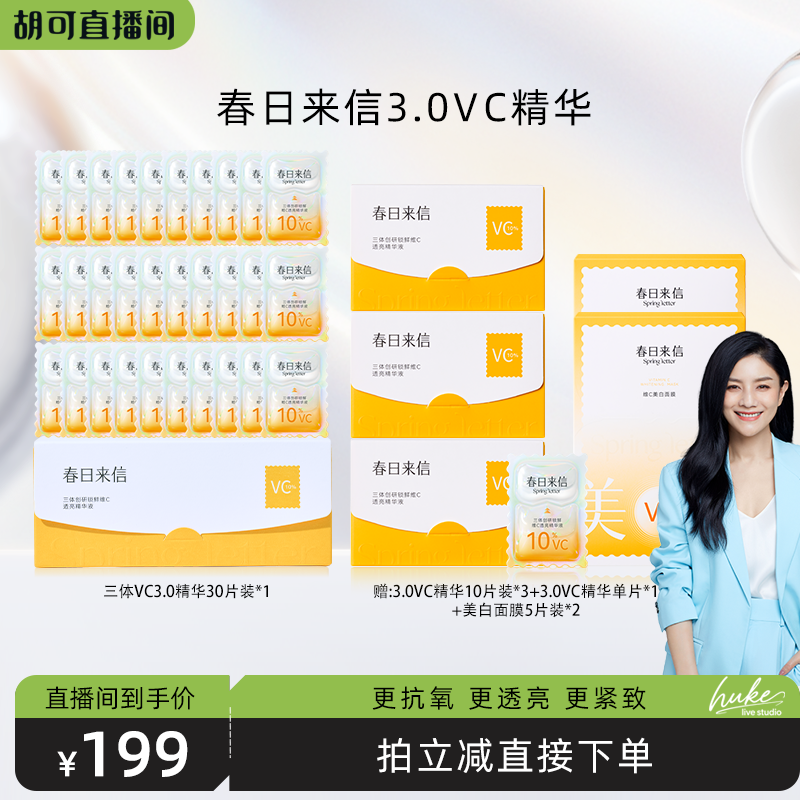 【胡可直播間】春日來信10%三體VC精華3.0提亮膚色淡紋抗皺