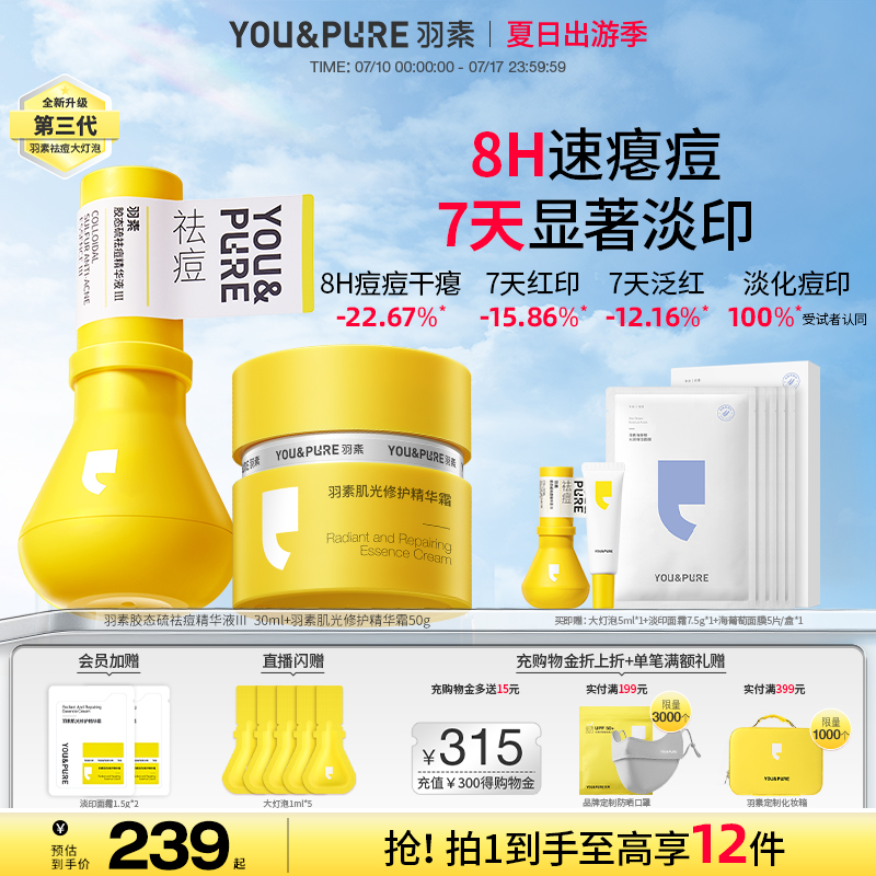 羽素大燈泡3.0淡印霜套組救急祛痘修復淡印面霜祛紅痘印改善黑印