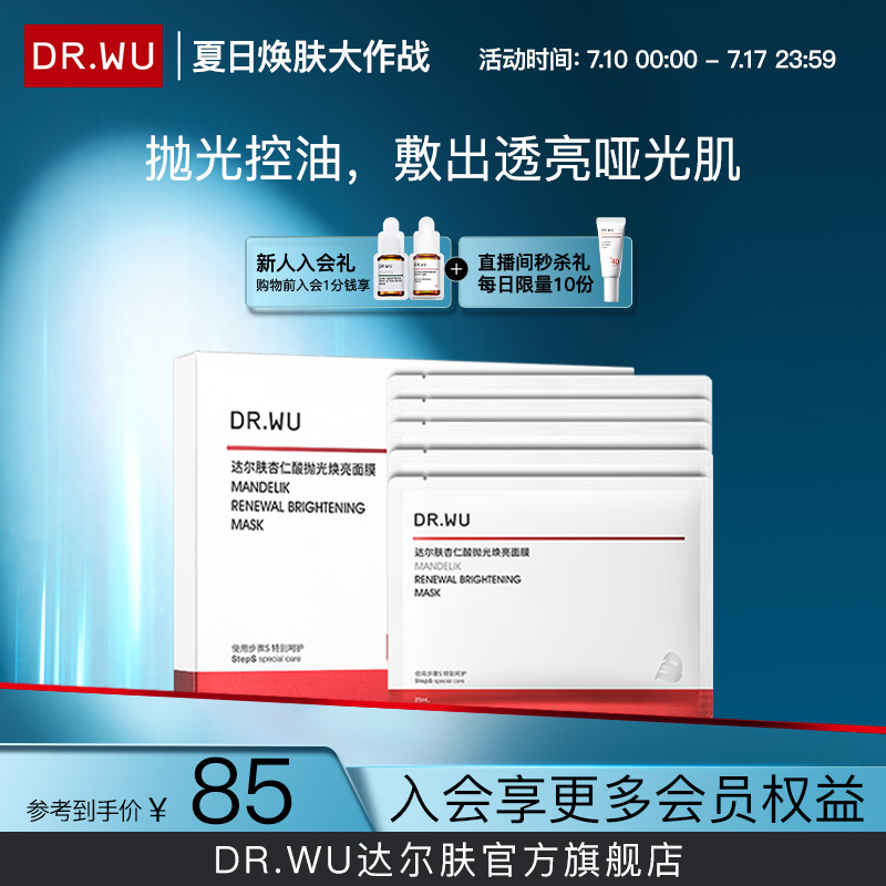 DR.WU達爾膚杏仁酸拋光煥亮面膜5片保濕控油提亮