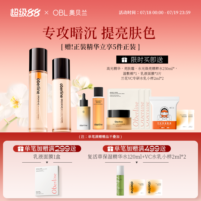 奧貝蘭水乳套裝補水保濕去黃提亮收縮毛孔控油敏感肌護膚品女正品