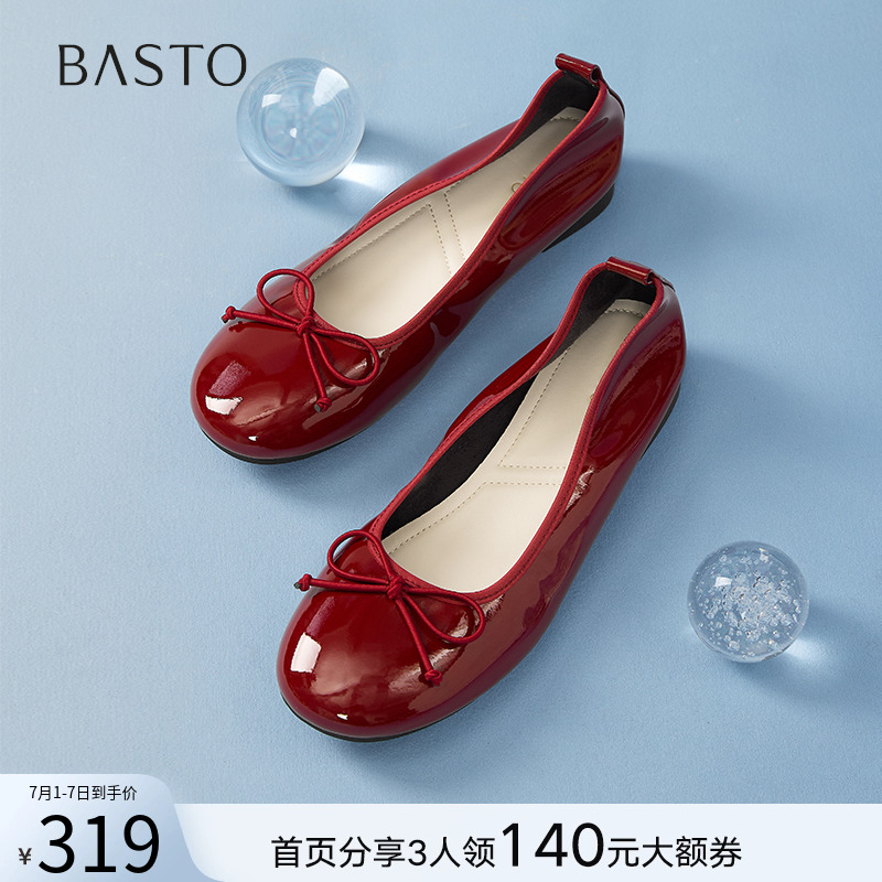 百思圖春夏商場新款新中式國風船鞋平底淺口女羊皮單鞋A4502CQ4