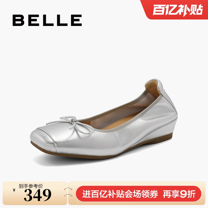百麗女鞋子真皮淺口瑪麗珍鞋通勤舒適蝴蝶結平跟單鞋女B2103CQ4