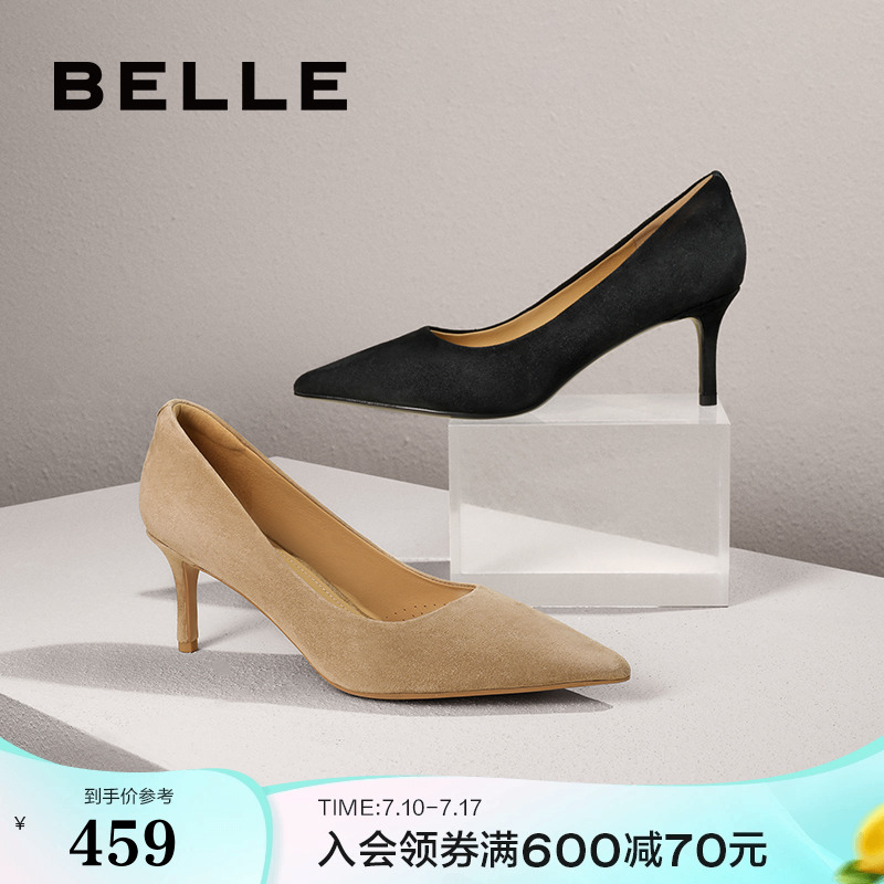 百麗粗高跟單鞋女2025新款真皮上班穿不累腳淺口單鞋子E1B1DCQ5