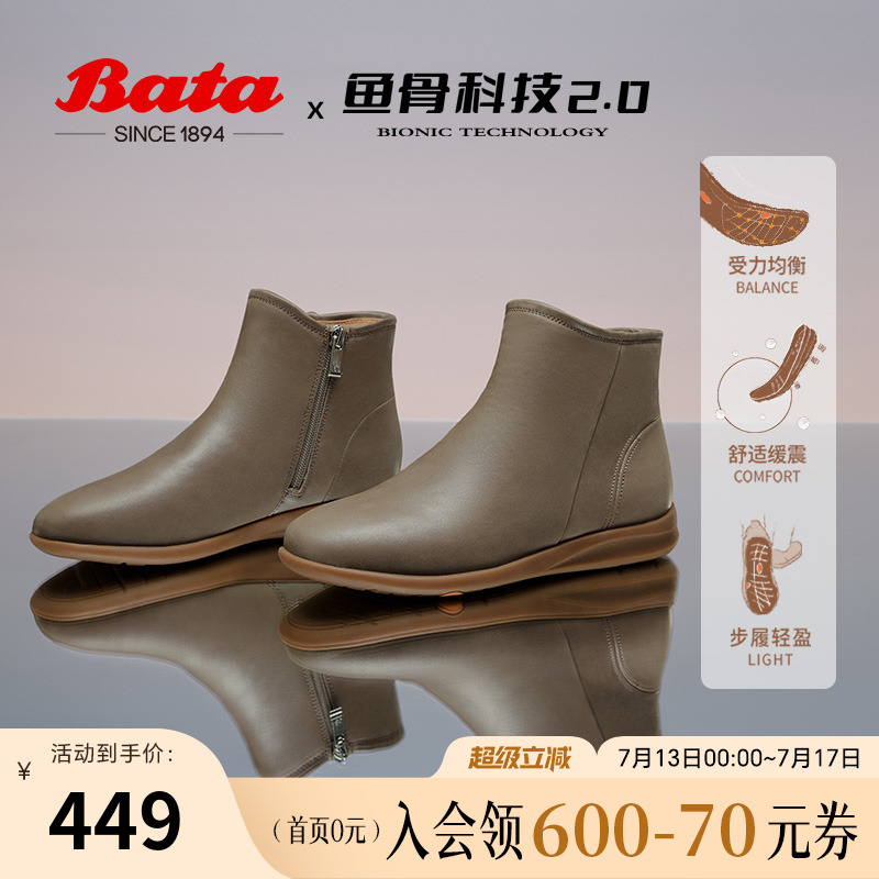 Bata時裝靴女秋季商場新款軟底通勤百搭舒適短筒靴AKG40DD4