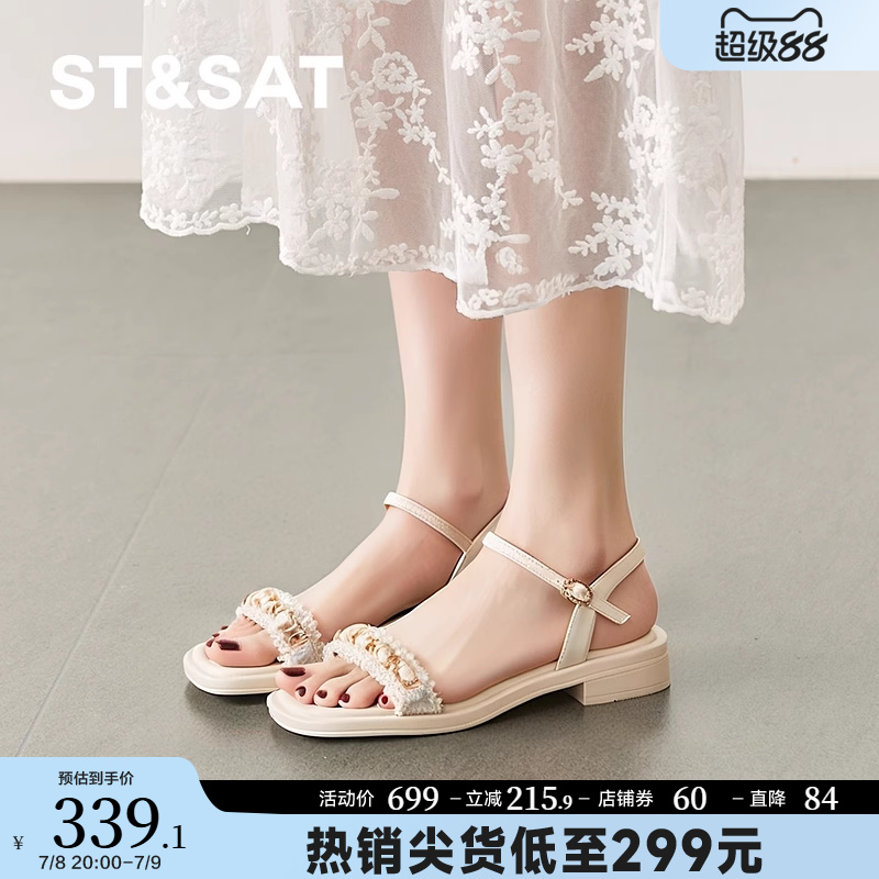 星期六一字金屬扣帶2025夏款休閑通勤方跟時裝女涼鞋SSD2115417