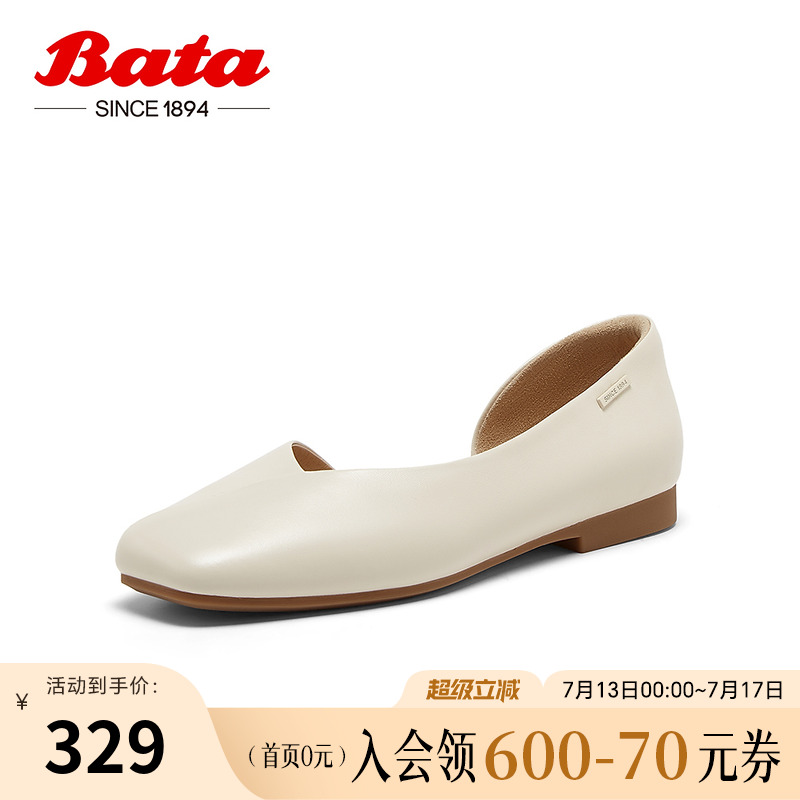 Bata淺口涼鞋女春秋商場羊皮軟底側空通勤單鞋AFZ33AK4