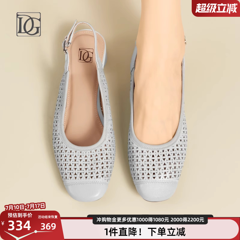 lost in echo2025春夏新款時尚布洛克撞色鏤空多條帶輕便平底涼鞋