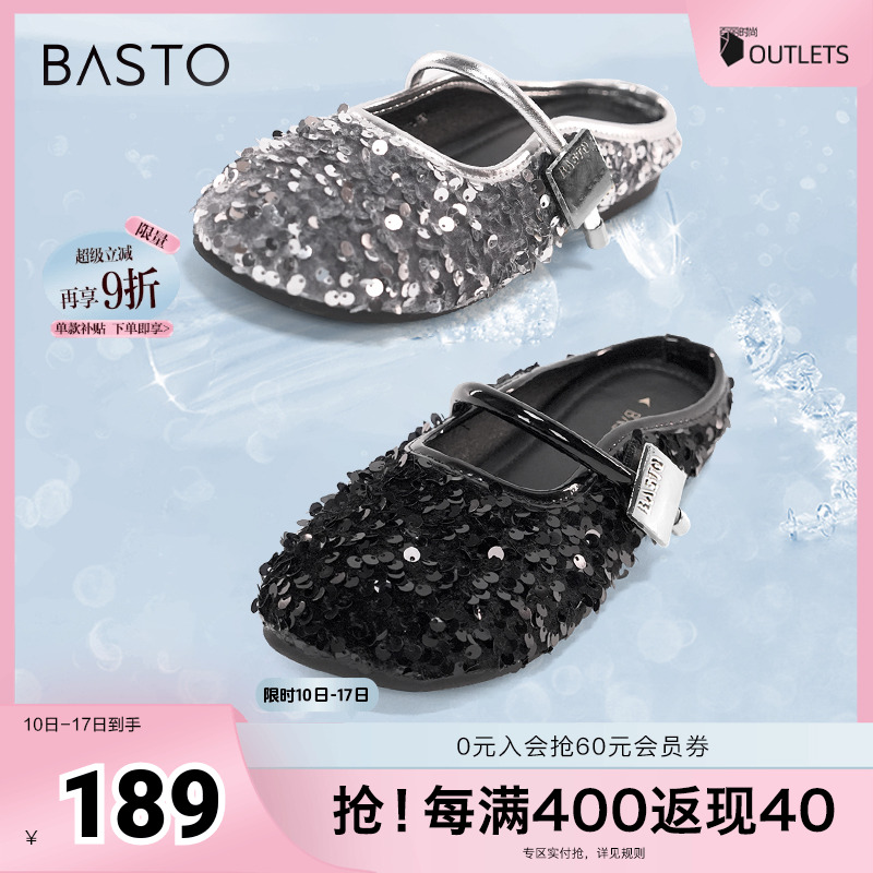 百麗女鞋子小香風包頭涼鞋女淺口法式通勤平底淺口單鞋BXK30BH4