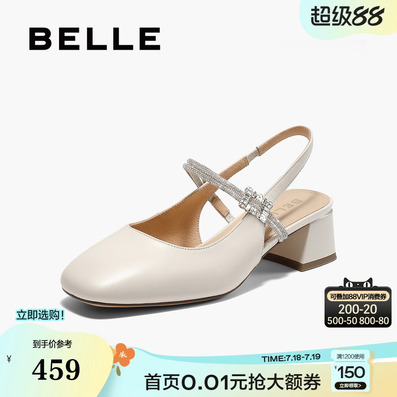 百麗女鞋子包頭涼鞋25夏季新款真皮粗高跟瑪麗珍淺口鞋B2519BH5