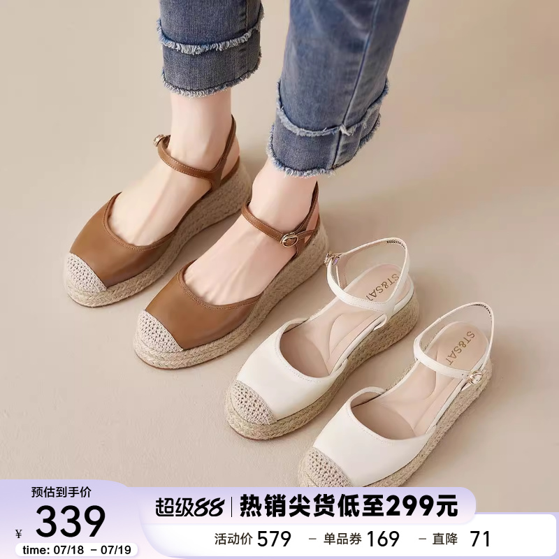星期六百搭休閑編織拼接瑪麗珍鞋女厚底增高防水臺不累腳淺口涼鞋
