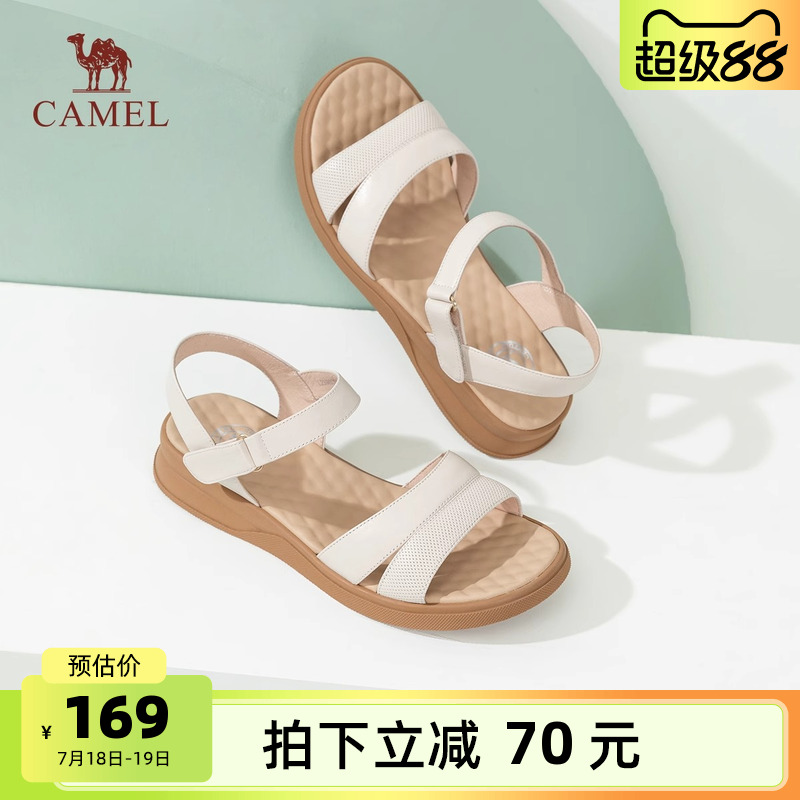 駱駝女鞋2025夏季新款時尚休閑百搭露趾舒適魔術貼時裝媽媽涼鞋女