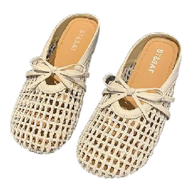 星期六鏤空編織蝴蝶結包頭半拖鞋女夏外穿2025新款軟底舒適穆勒鞋
