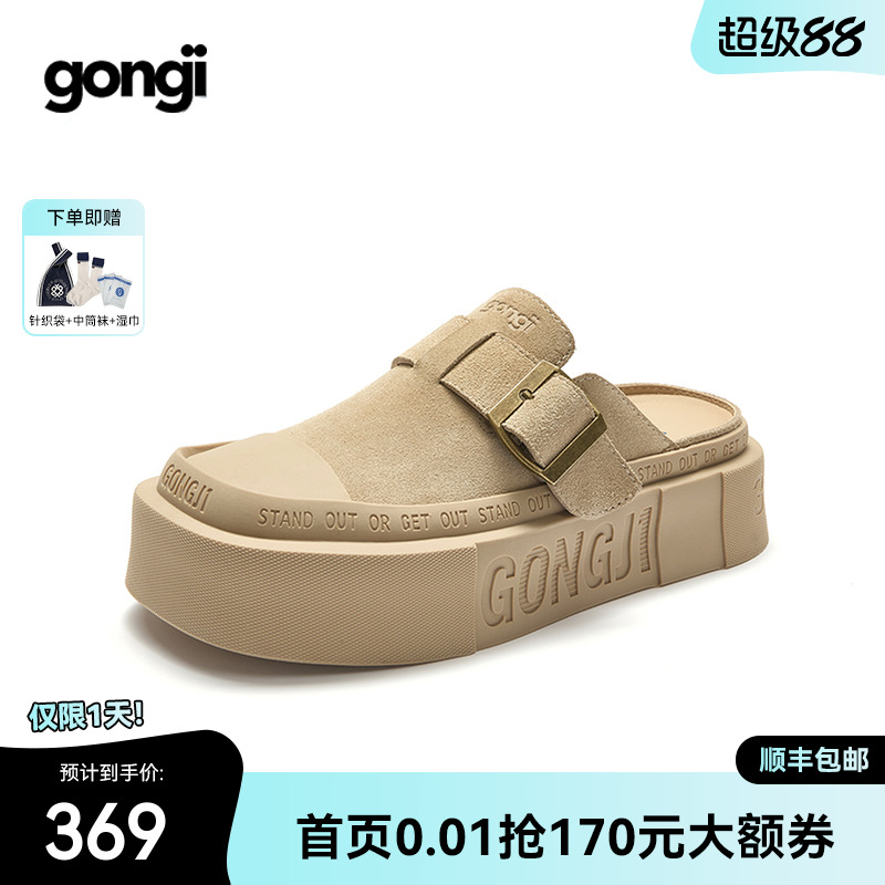 張馨予同款GONGJI包頭半拖鞋女外穿2025新款一腳蹬厚底穆勒勃肯鞋