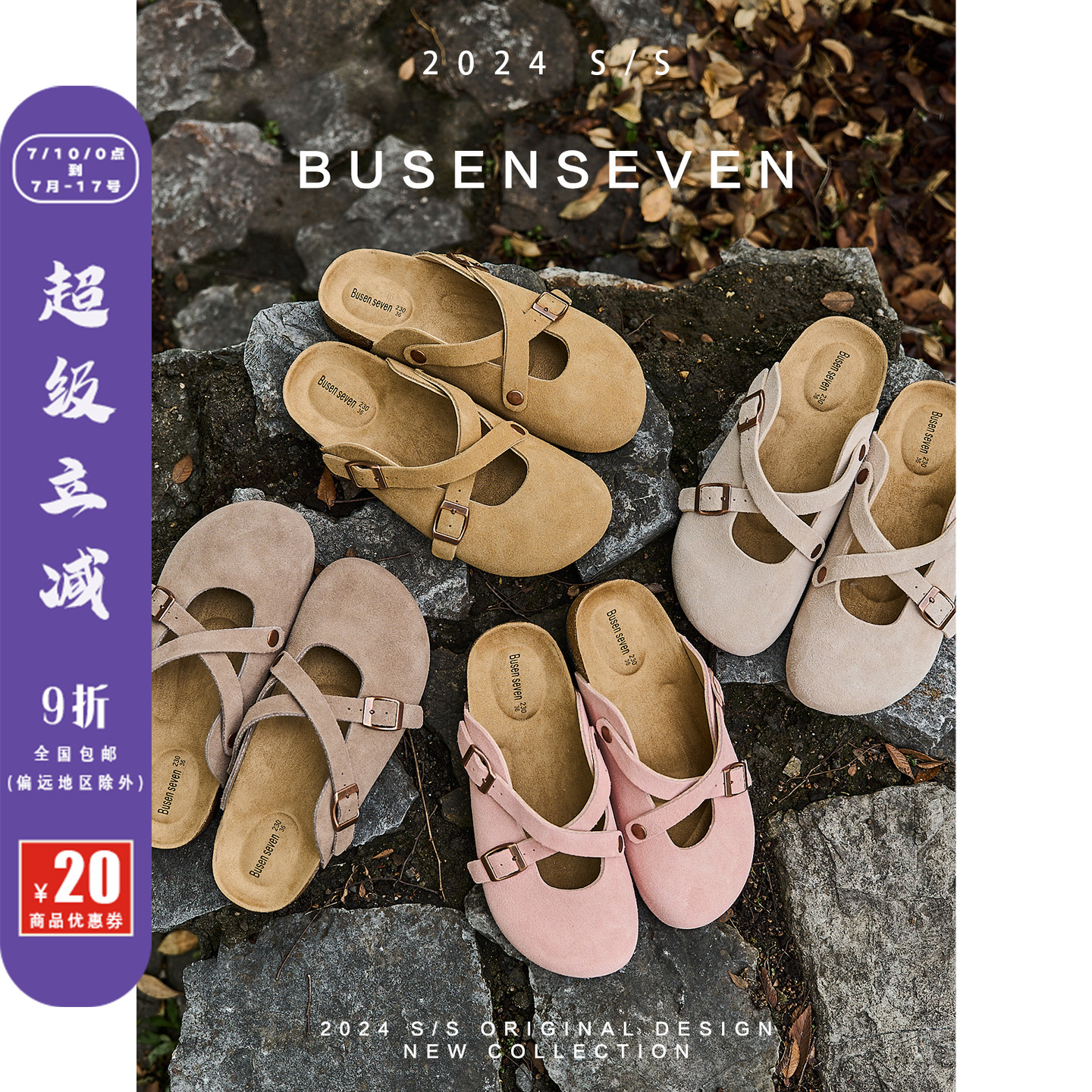 柒步森林"海島假日"勃肯包頭交叉帶半涼拖鞋子女外穿夏季時尚新款