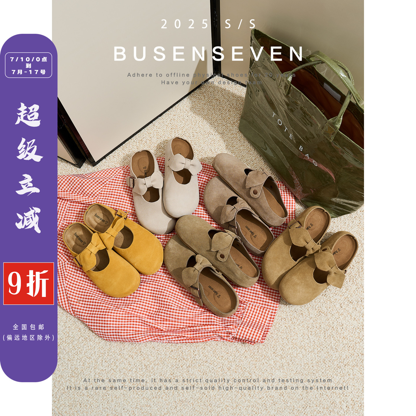 柒步森林牛反絨包頭蝴蝶結勃肯涼拖鞋子女半拖外穿時尚百搭夏新款