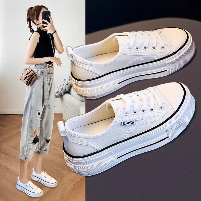 厚底小白鞋女2023新款白色超火帆布鞋百搭配裙子秋季女鞋休閑板鞋