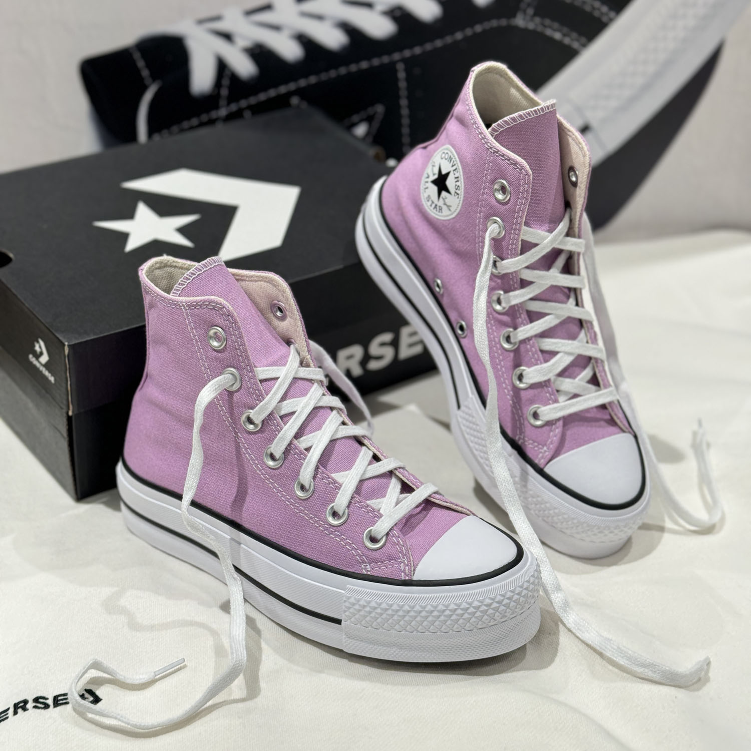 正品converse匡威All Star Lift粉紫色增高厚底高幫帆布鞋A09392C