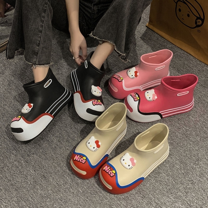 Kitty貓雨鞋膠鞋親子款防滑耐磨時尚款外穿百搭厚底可愛防水雨靴