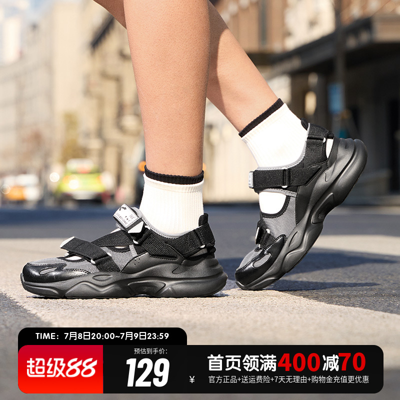 逐浪鴻星爾克涼鞋男夏季透氣防臭運動鞋外穿涼拖魔術貼沙灘鞋女鞋