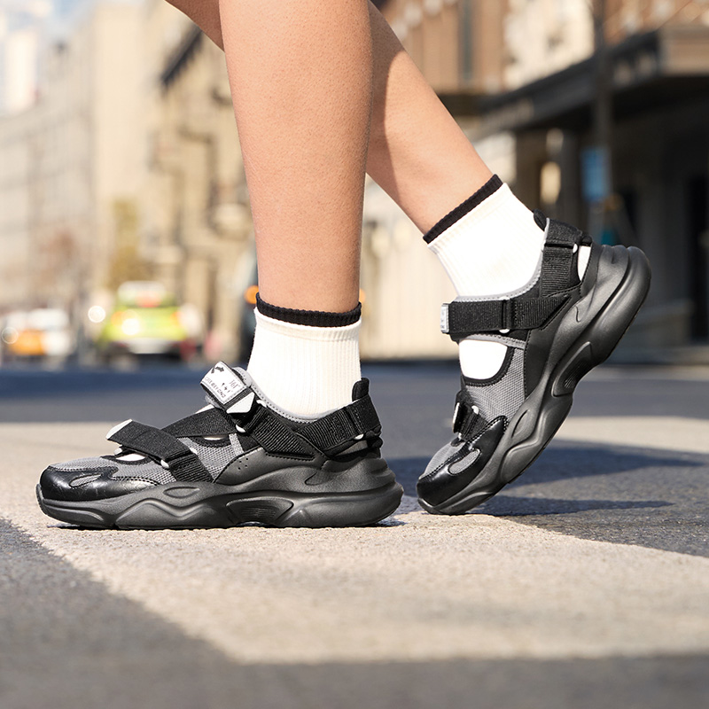 逐浪鴻星爾克涼鞋男夏季透氣防臭運動鞋外穿涼拖魔術貼沙灘鞋女鞋