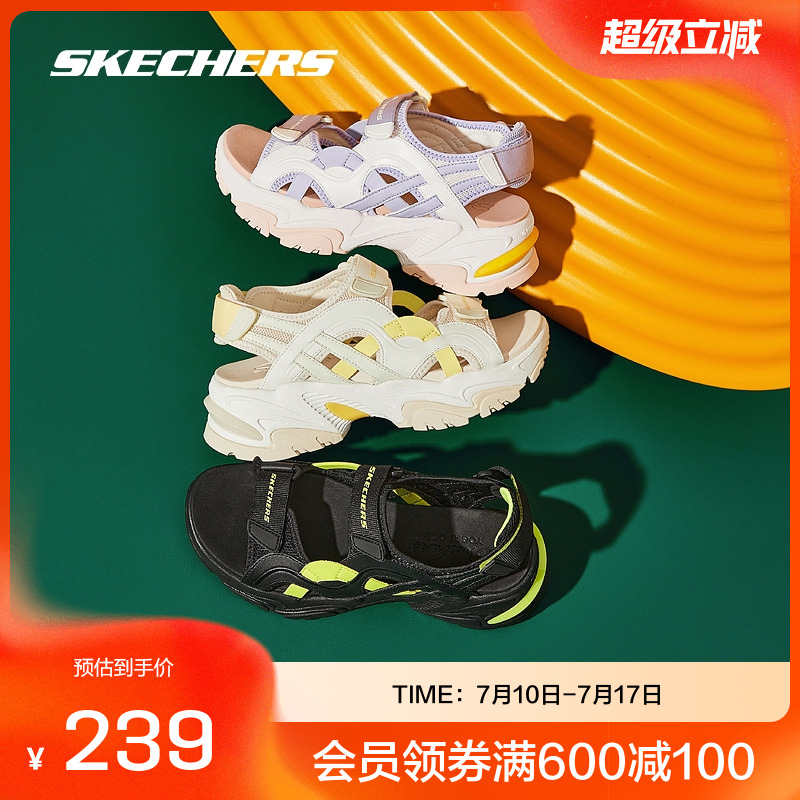 斯凱奇女子休閑夏季魔術貼涼鞋簡約日常百搭透氣舒適輕盈沙灘鞋