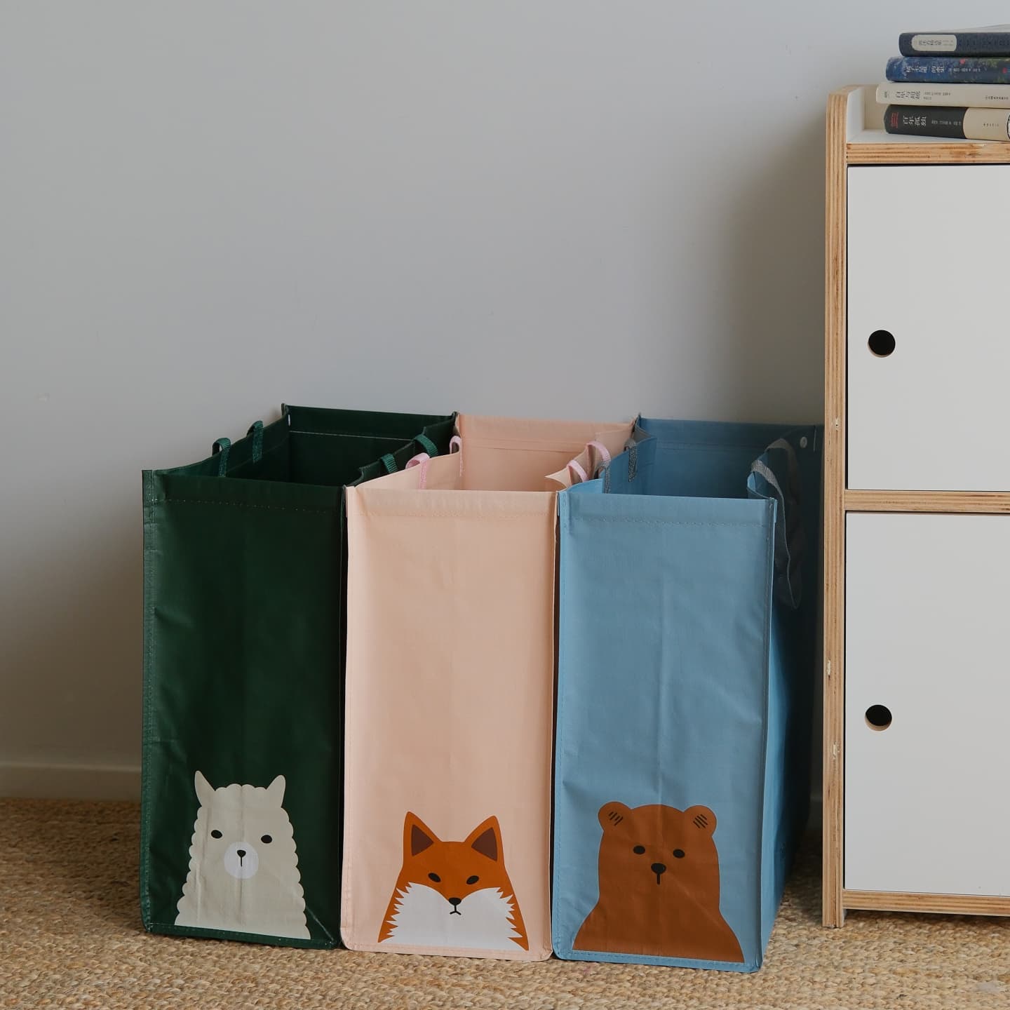 居家收納袋防水環保編織卡通圖案分類整理組合通勤買菜超市購物袋