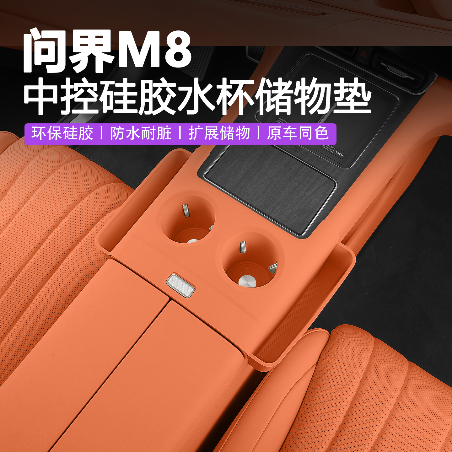 適用于問界M8水杯套硅膠墊改裝防水汽車車載內飾收納儲物用品配件