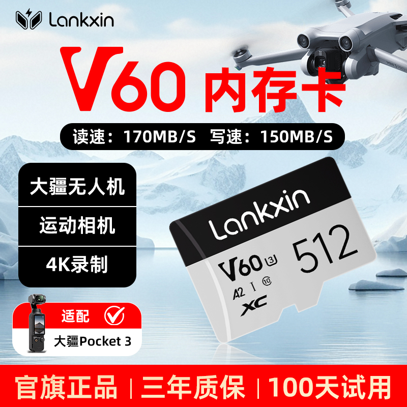 蘭科芯高速tf卡內存卡無人機錄制專用高性能卡4k運動連拍相機卡