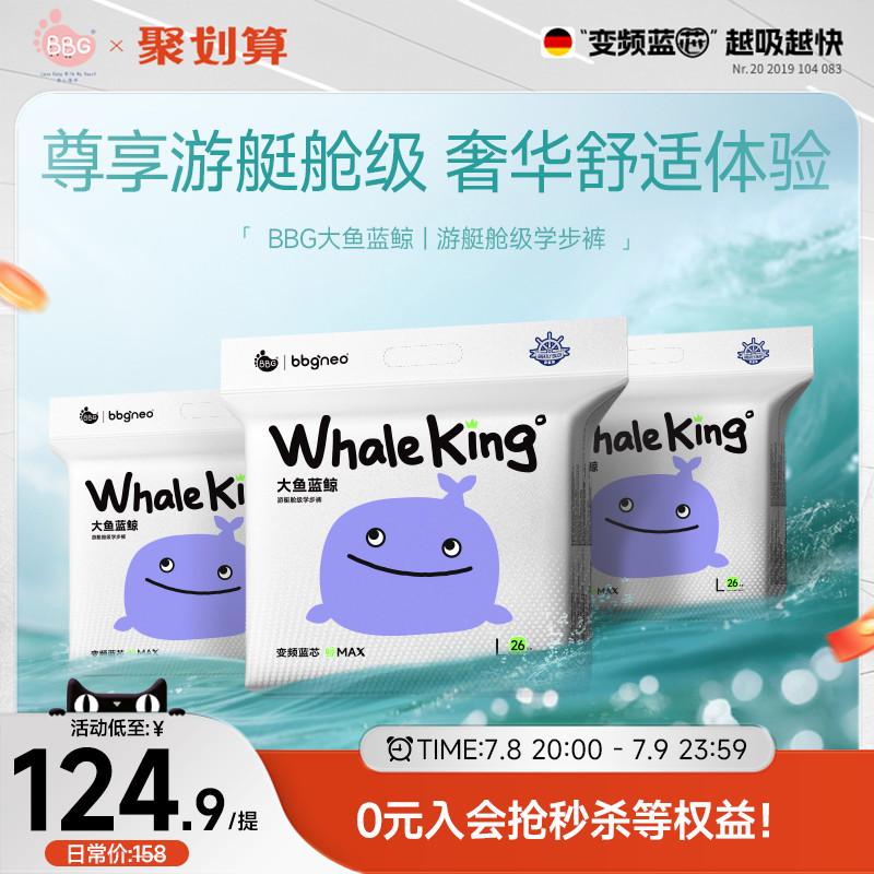 3包/BBG大魚藍鯨紙尿褲拉拉褲尿不濕學步褲瞬吸干爽XL2XL男女寶寶