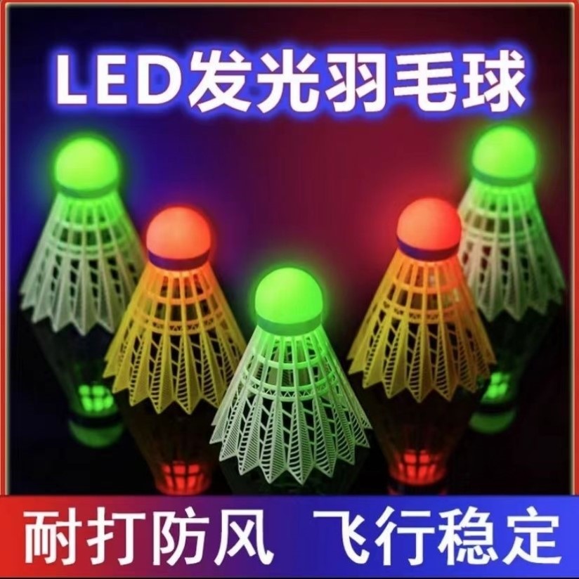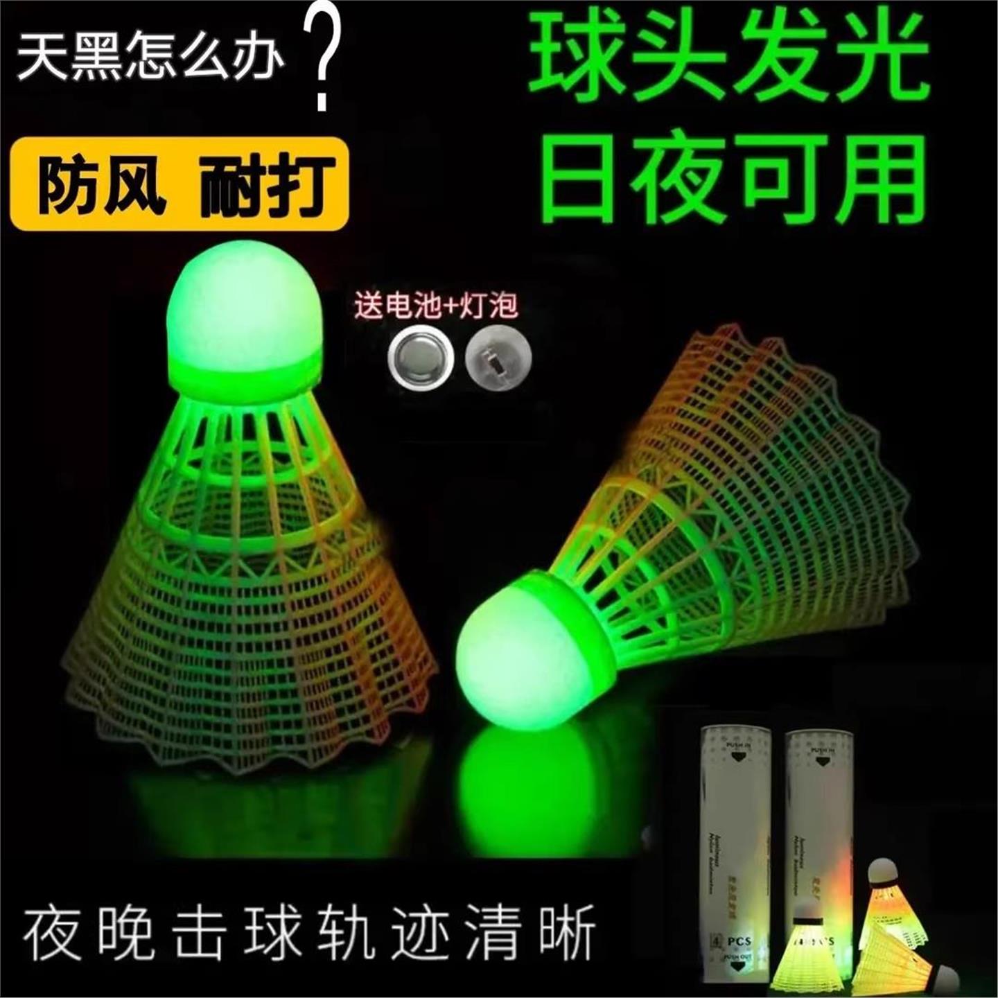 球頭發光羽毛球防風夜光尼龍球帶燈耐打夜用熒光夜打閃光球塑料