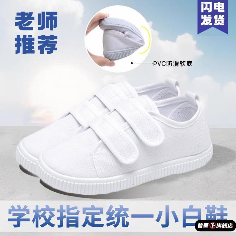 六一兒童青少年男女小白鞋校園運動小學生幼兒園演出白色帆布透氣
