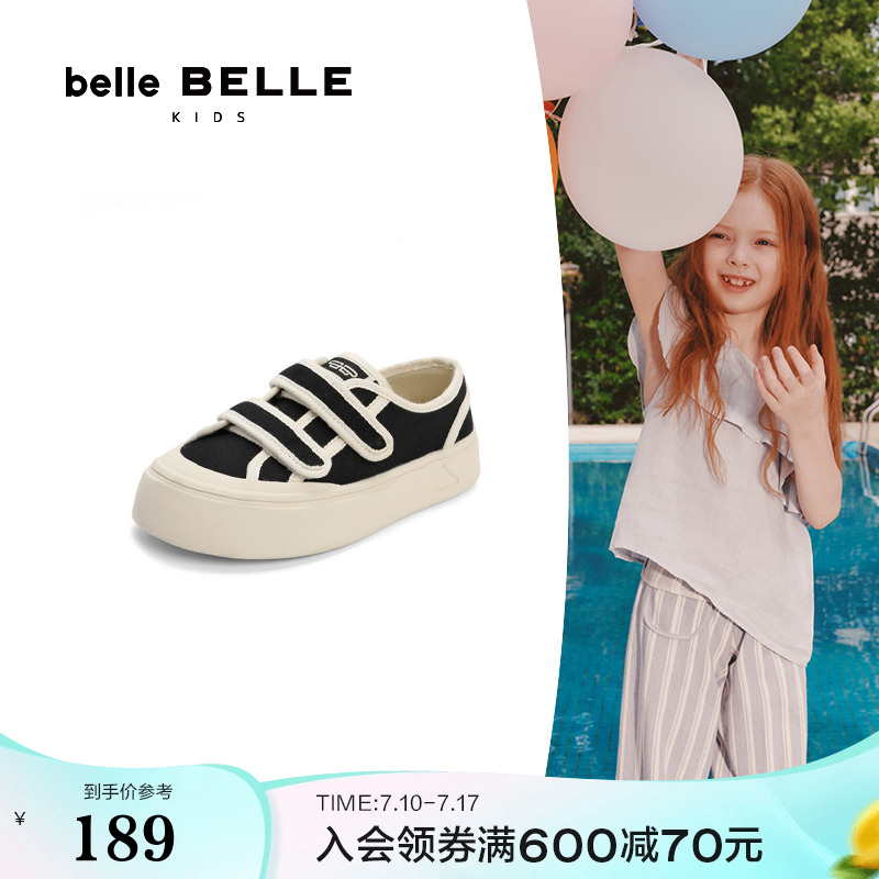 百麗帆布鞋厚底女童鞋2024春季新款魔術貼大小童休閑鞋20690A84