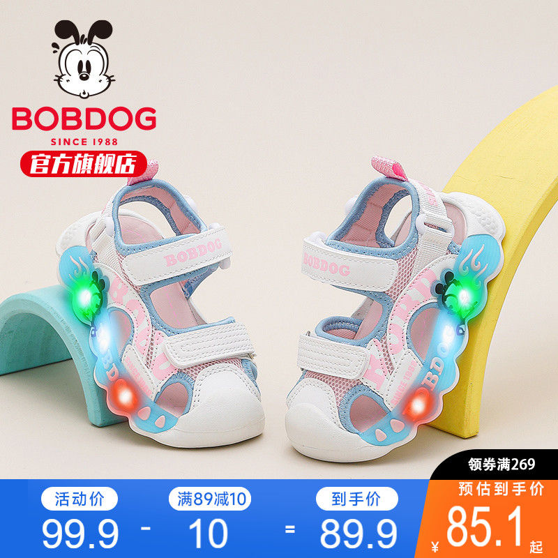巴布豆童鞋女童亮燈鞋夏季2025新款夏涼女寶寶鞋包頭涼鞋兒童鞋子