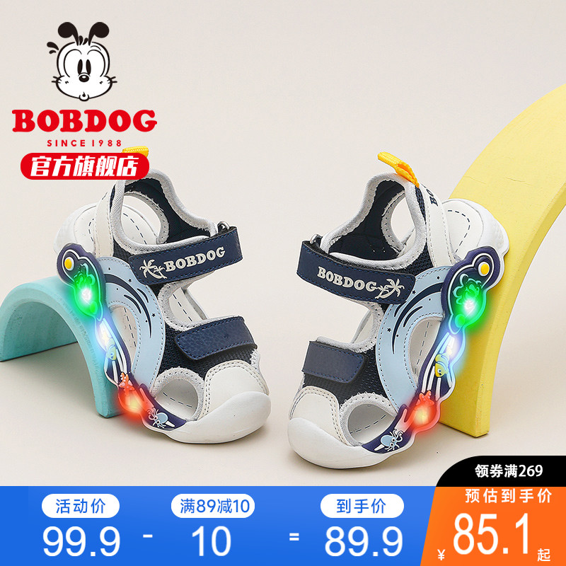 巴布豆童鞋男童寶寶涼鞋夏季2025新款幼童包頭亮燈鞋女兒童學步鞋