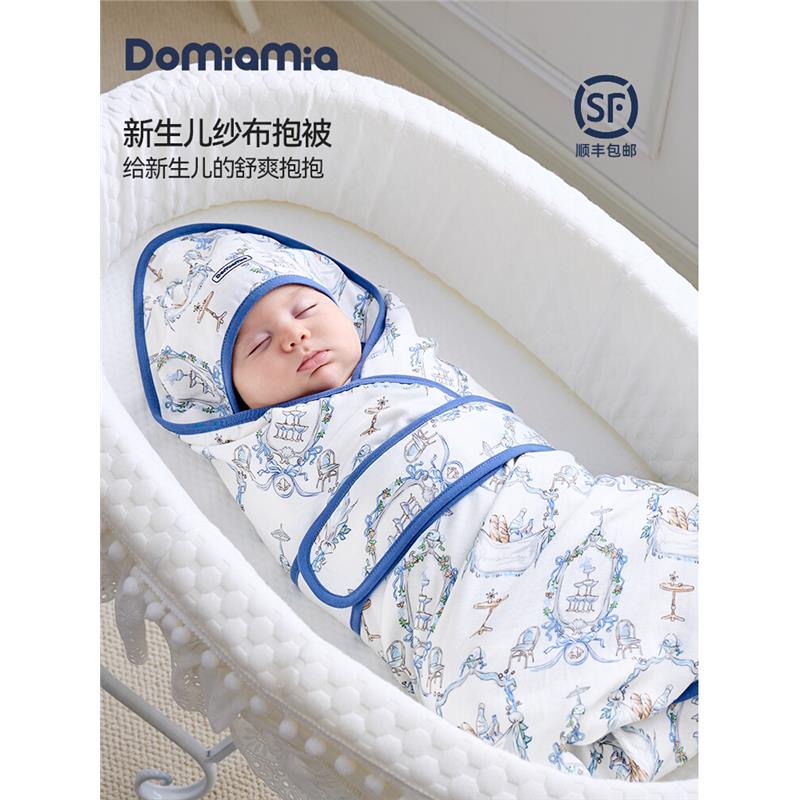 Domiamia嬰兒竹棉包被新生兒抱被初生防驚跳嬰兒夏季透氣襁褓包單