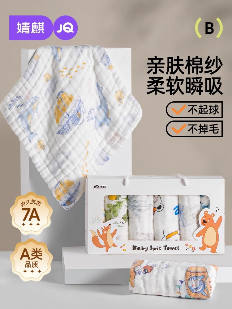 婧麒嬰兒小方巾兒童毛巾純棉紗布口水巾寶寶洗臉巾新生超軟方巾