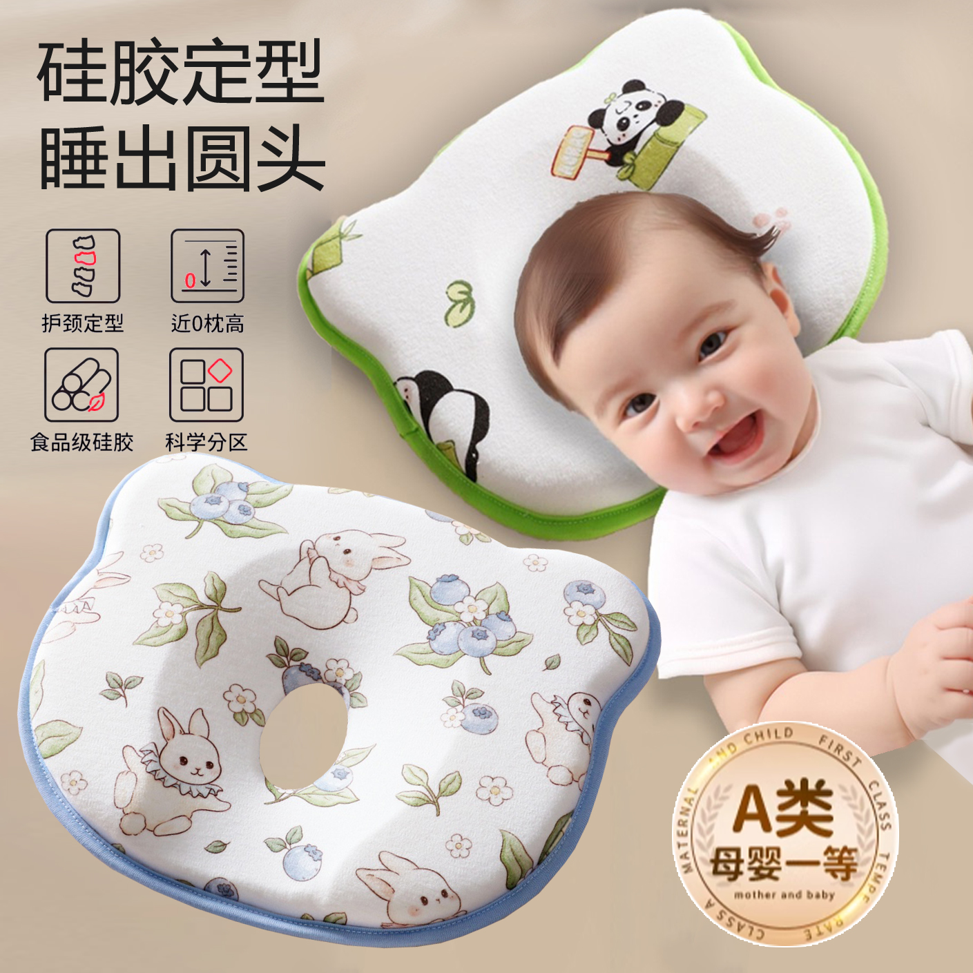 嬰兒寶寶定型枕頭0到6個月以上硅膠新生嬰幼兒糾矯正頭型防偏頭