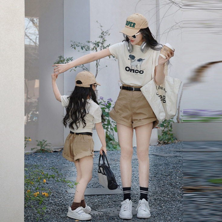 旅游度假洋氣親子裝25夏季新款母女裝時尚卡通小狗T恤短褲套裝潮t