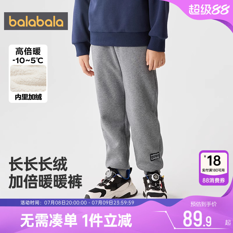 巴拉巴拉親子裝加絨褲子男童女童運動褲反季秋冬新款兒童一家四口