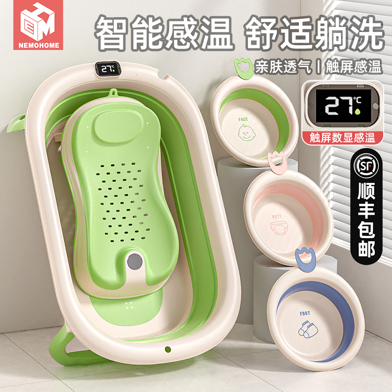 壹仟愛嬰兒洗澡盆寶寶浴盆新生兒洗澡躺托神器水溫計感溫加厚家用