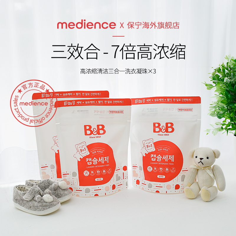 韓國保寧兒童嬰兒寶寶專用高濃縮清潔三合一洗衣凝珠30粒/*3袋