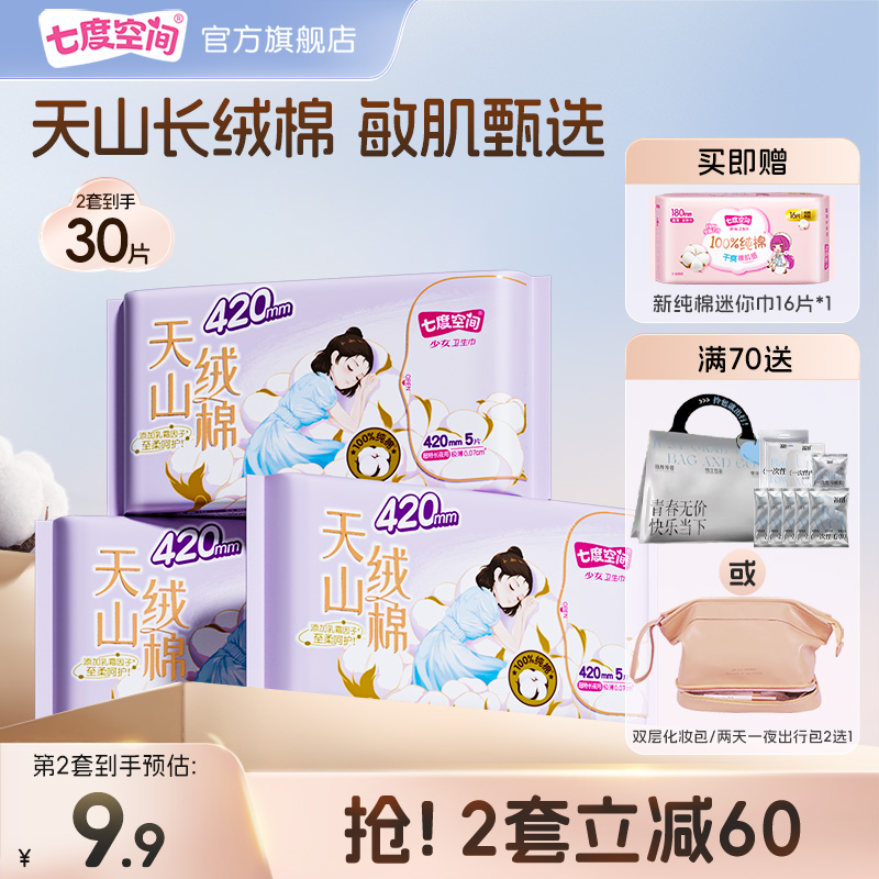 【新國標認證】七度空間少女新升級純棉干爽日夜用衛生巾超薄