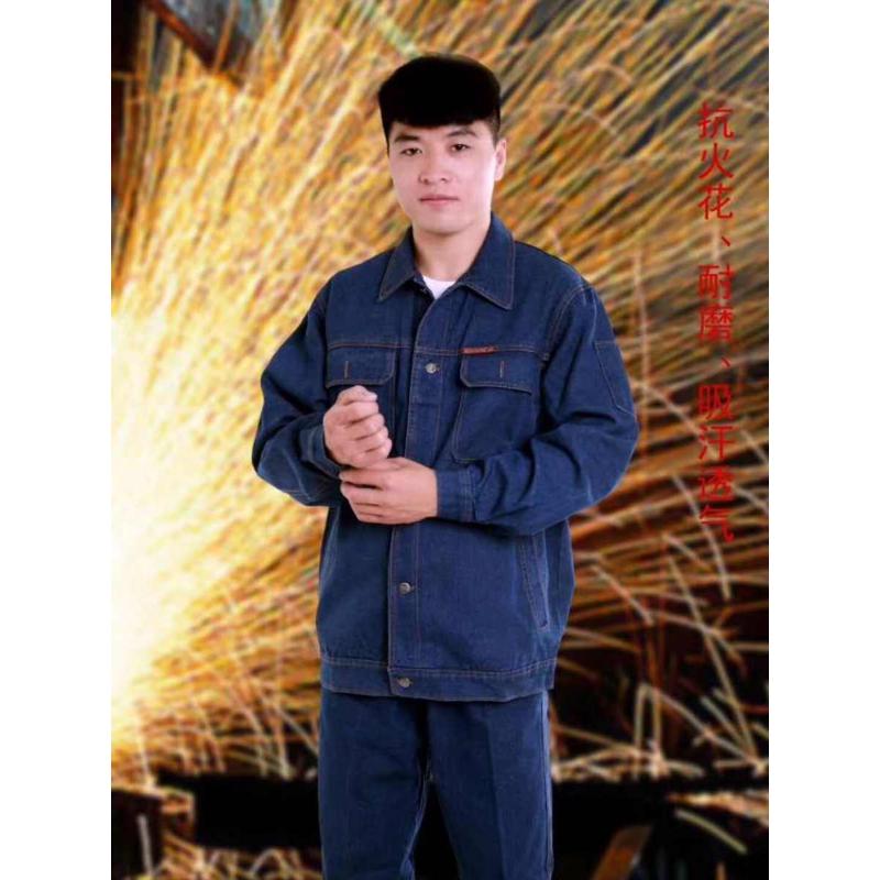 巴特牛仔棉工作服男拉鏈電焊汽修長袖套裝加厚全棉多口袋焊工服