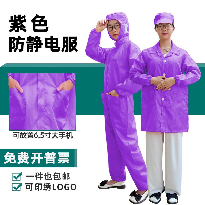 靜電服工作服連體連帽無塵服大褂短款上衣套裝男女車間紫色靜電衣