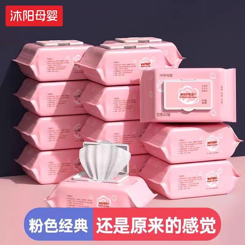 沐陽濕巾10包80抽新生兒手口屁屁專用加厚家庭實惠裝無熒光劑寶寶