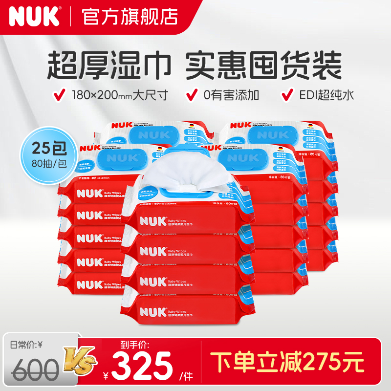 【家庭裝】NUK超厚特柔嬰兒濕巾兒童寶寶純水濕紙巾80抽*25整箱